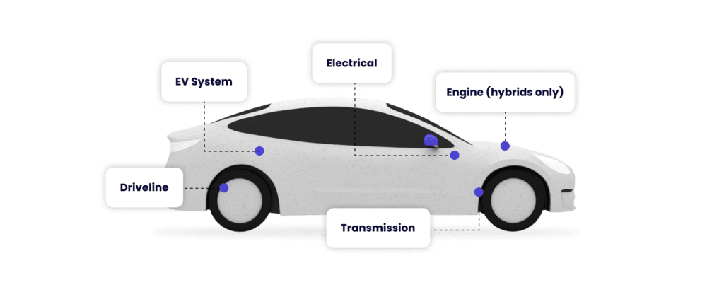 Our most popular and highest level of cover – Platinum – covers all these components in your EV system: